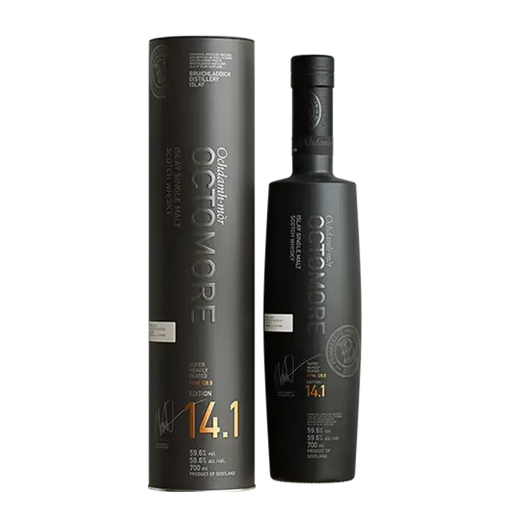 Jest on destylowany z jęczmienia o koncentracji związków fenolu od 80 do ponad 200 ppm. W 2015 przekroczono granicę 250 ppm (Octomore 06.3, 258 ppm), a zaledwie dwa lata później pokonano pułap 300 ppm). Whisky doświadcza corocznych limitowanych edycji, czternasta seria trafiła na rynek latem 2023 roku. Prezentowana tu jej pierwsza odsłona, to whisky wydestylowana w 2017 roku w 100% ze szkockiego jęczmienia, odmiana Concerto, zebranego rok wcześniej i słodowanego do poziomu koncentracji związków fenolu 128,9 ppm. Whisky starzono w beczkach po bourbonie pierwszego napełnienia (dąb amerykański) i butelkowano z mocą 59,6% abv.